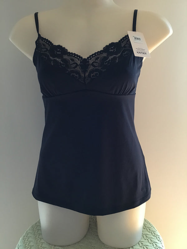 Cotton Elastane stretch Camisole with lace trim across neck line, a pretty garment to give you that extra layer of warmth or a great garment for wearing under a jacket. ...