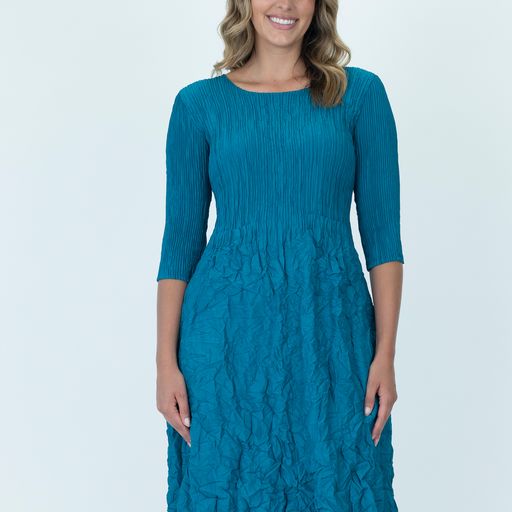 Crushed dress by Maglia FABRIC: 100% CRUSHED POLYESTER Round neck dress with elbow length sleeves and front pockets, Knee length. This is a very slimming style and has a very...