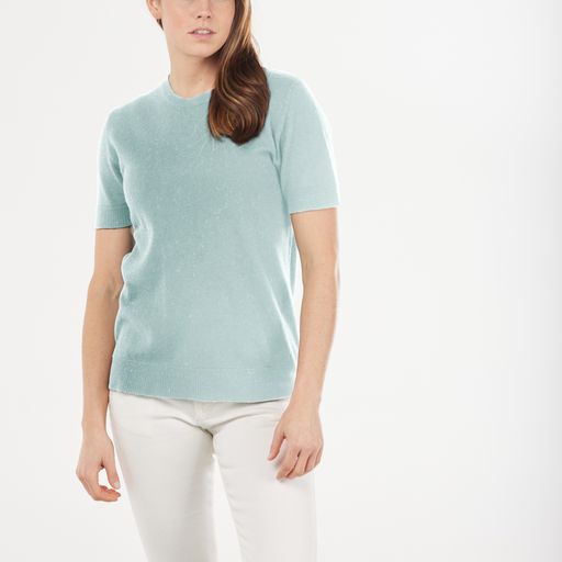Short sleeve Jumper by Bridge & Lord FABRIC: 95% Australian Merino Wool, 5% Mongolian Cashmere Basic top with a crew neck and short sleeves, 1x1 ribbed trims. It can be...