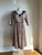 Brushed back Satin nightie with 3/4 sleeves with a split and black binding and black lace trim in v neck neckline gathering under the bust and a straight back, mid...