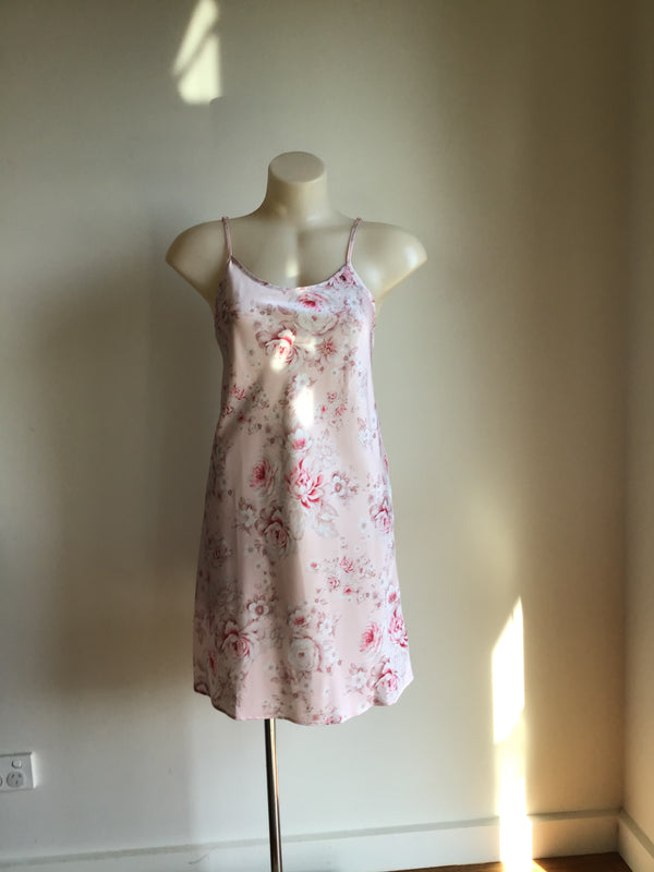 Satin short Chemise Nightie with fine adjustable straps. A silk feeling fine polyester Satin.