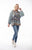 Boho style top with a pleat yoke and body in 1 print and a lighter colored bat wing sleeve in a contrast print, border print on the body, round neck with a small V to the button opening with goes down to the bottom of the yoke.
