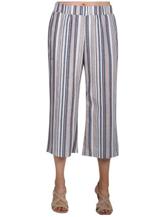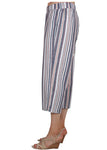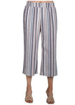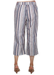 3/4 length Pants with an elastic waist and side pockets in a stripe in denim white bone and papaya.