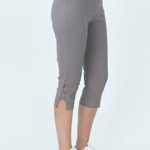 Pull on pants with 5cm waist band with elastic, Very stretchy fabric for comfort, nice crossover feature on the leg.