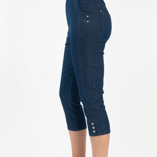 7/8th Length Jeans by Renoma FABRIC: 95% COTTON 5% SPANDEX Pull on jeans with elastic waist and front and back pockets with small stud embellishment as shown in the photo...