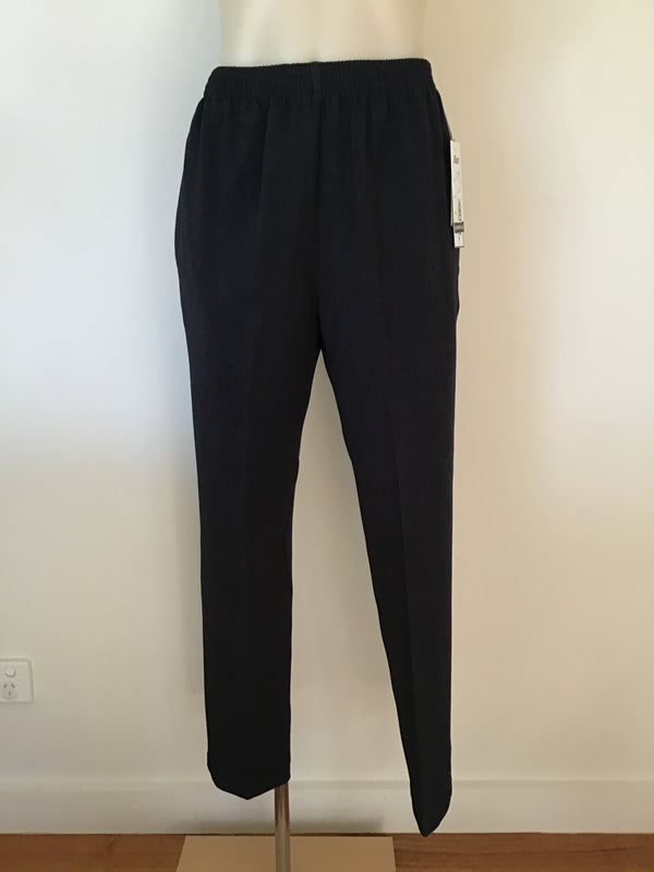 AUSTRALIAN MADE Jillian Slacks in Polyester Viscose & Elastane, pull on with elastic waist shorter length to fit Ladies 5'4" and under without shortening