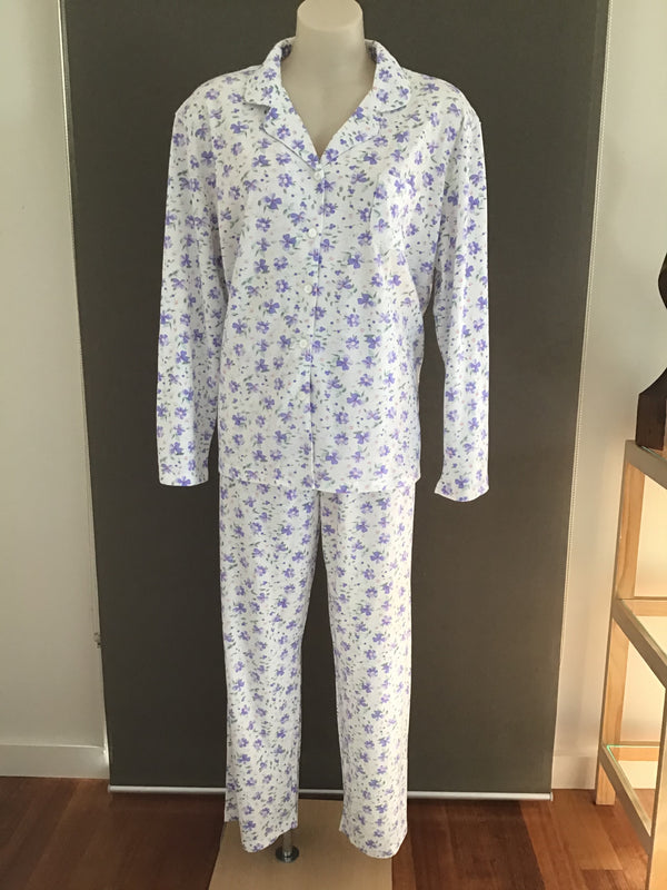 Polyester Cotton Shirt maker Pyjamas with a collar and button front with long sleeves, pants with long leg and elastic waist. A warm and comfortable pyjama for Winter.