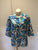 This 3/4 sleeve blouse a cuff with a split and a collar, button through and splits on the sides.