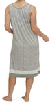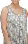 This Lovely Sage and Cream print nighty is sleeveless and has a round neck trimmed with a small ribbon bow and is gathered around the neckline to give you a bit of fullness, it has a cream and a Sage stipe on the hemline.