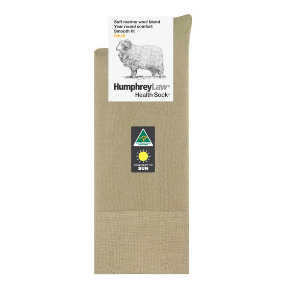 Smooth fit merino wool blend with extra reinforcing at wear points, for year round comfort. 60% Fine Merino Wool 38% Nylon 2% Elastane AUSTRALIAN MADE AND OWNED.
