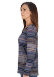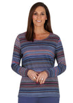 Round neck stripe top by Sportswave FABRIC: 95% POLYESTER 5% ELASTANE Round neck top in a fine stripe in Navy Blues Pink Beige & White in a warm soft fabric...
