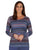 Cowl neck top in a soft warm fabric for winter with a navy background with pink and aqua print.