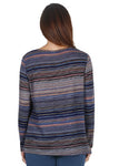 Round neck stripe top by Sportswave FABRIC: 95% POLYESTER 5% ELASTANE Round neck top in a fine stripe in emerald orange brown and mint, warm soft fabric with long sleeves. ...