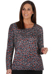 Round neck top with long sleeves, classic style in a spice sage silver and black print, in a soft warm fabric great for under jackets.