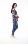 Boho Top by Orientique FABRIC: 100% RAYON Boho style top with a pleat yoke and body in 1 print and a lighter colored bat wing sleeve in a contrast print,...