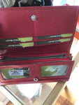 Leather wallet by Franco Bonini Ladies leather wallet with rose print on the front and plain black with red tab, lots of pockets for cards and zip pocket for coins...
