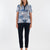 Polo top with a printed bodice and navy collar and button tab, a great top for the golfing ladies.