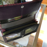 Leather wallet by Franco Bonini Ladies leather wallet with rose print on the front and plain black with red tab, lots of pockets for cards and zip pocket for coins...