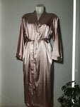 Envy Polyester Satin wrap gown with a long sleeve and mid calf length. This plain gown can be matched with Nighties Style No. 5025 no green with pink floral