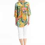 Boho Style top by Orientique FABRIC: 100% RAYON Boho style top with tie neck line, 3/4 sleeves,  gathering under bust scooped hemline, belt tab on sleeve so it can be...