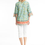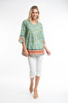 Top by Orientique FABRIC: 100% ORGANIC COTTON V Neck top with 3/4 sleeves, pleated front and contrast hemline on the sleeve and body.  Made In India