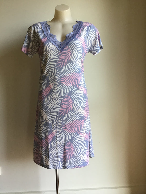 Eaden Nightie with a short sleeve soft lace V neckline knee length. Made in dri release fabric.  85% Polyester 15% Cotton Dries 4x faster than cotton Helps regulate skin temperature...