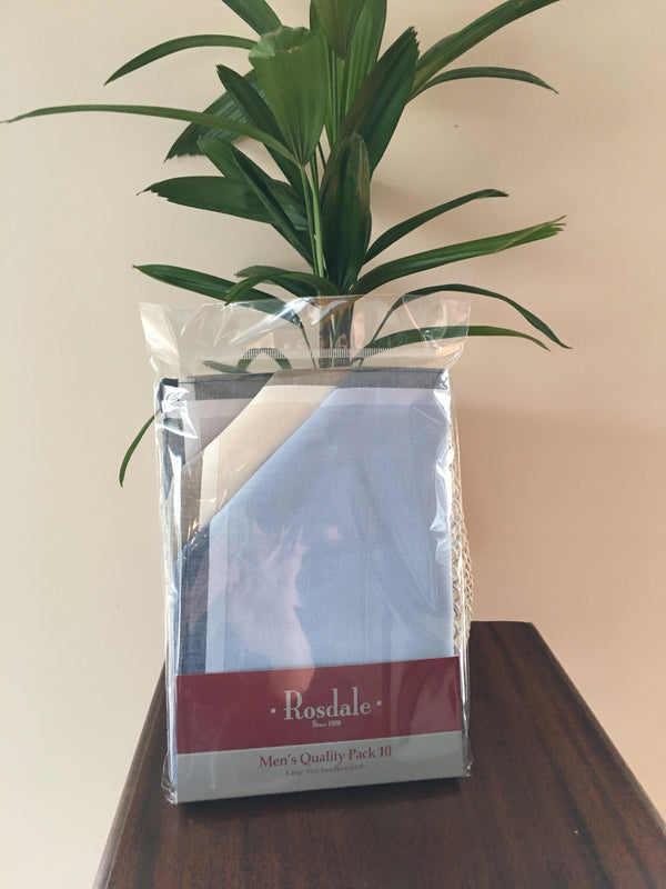 Rosdale Mens Gift pack of 10 100% cotton fine quality Handkerchiefs a great gift for any man for Fathers day Birthdays or Christmas.