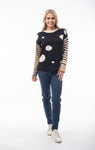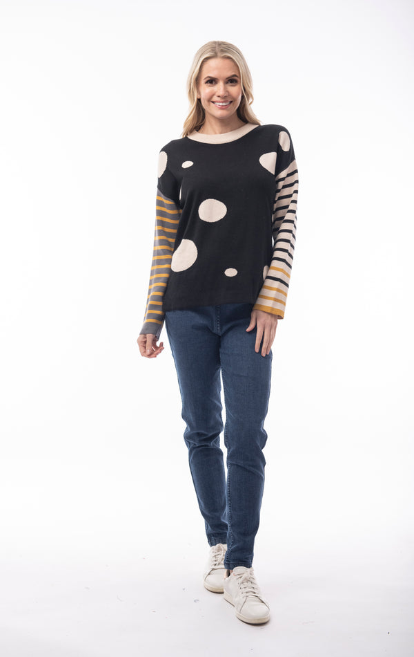 Reversible Knit by Orientique FABRIC: 95% ORGANIC COTTON 5% ELASTANE Reversible jumper in a lovely soft cotton knit with a spot pattern on the body and striped sleeves.  Made In...