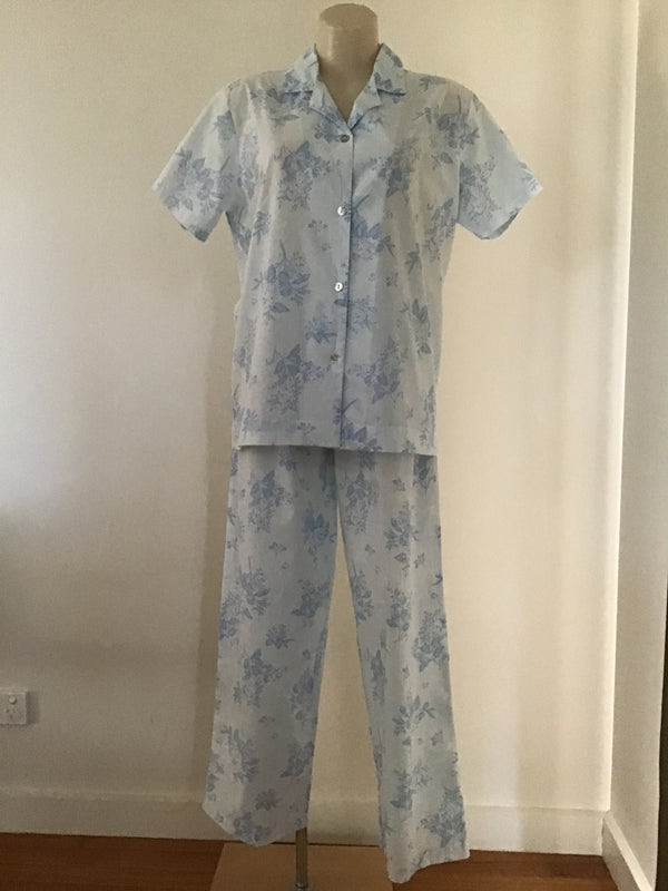 Pyjama's by Schrank 100% Fine Cotton with a shirt maker top with a collar and short sleeves, pants with an elastic waist and long legs. Made In China