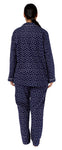 Pyjamas by Schrank FABRIC: 100% COTTON FLANNELETTE Pyjamas with a shirt style top with collar and buttons down the front in a navy background with white and red little bows...
