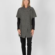 95% Polyester 5% Spandex in Charcoal & Black diamond shape textured print, Cross over style with Cowl style collar and 2 large Pockets.  Short Sleeves and great over tops or...